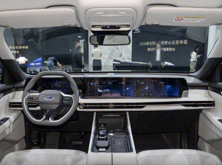 配置是新车的一大亮点。2026款福特锐界L全系标配 L2 级福特 Co - Pilot 360 智行驾驶辅助系统,涵盖 ACC 全速域自适应巡航、LC 车道居中辅助和 AEB 主动刹车等多项实用功能,显著提升了高速长途及城市拥堵路况下的行车便利性与安全性。12.3 英寸数字仪表盘与 27 英寸的超广域高清 4K 巨幅屏组成震撼的视觉界面,高清分辨率确保每个座位都能获得清晰的视觉信息。同时,车辆搭载 SYNC+2.0 智行互联系统,带来更流畅、智能的交互体验。