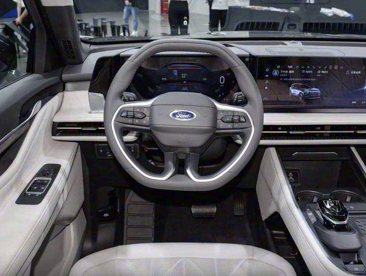 内饰方面,2026款福特锐界L的内饰进行了一系列升级。新车新增了乳白色内饰,营造出明亮、温馨的车内氛围。此外,豪华型及以上车型全系升级配备方向盘加热功能。部分车型搭载百万豪车同款的“半苯胺全粒面豪华真皮座椅”,由拥有百年历史的品牌鹰革沃特华提供皮料。该座椅皮料柔软细腻、抗污耐磨、透气性佳,椅面缝线元素源自迪奥品牌,提升了内饰的时尚与豪华感。